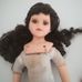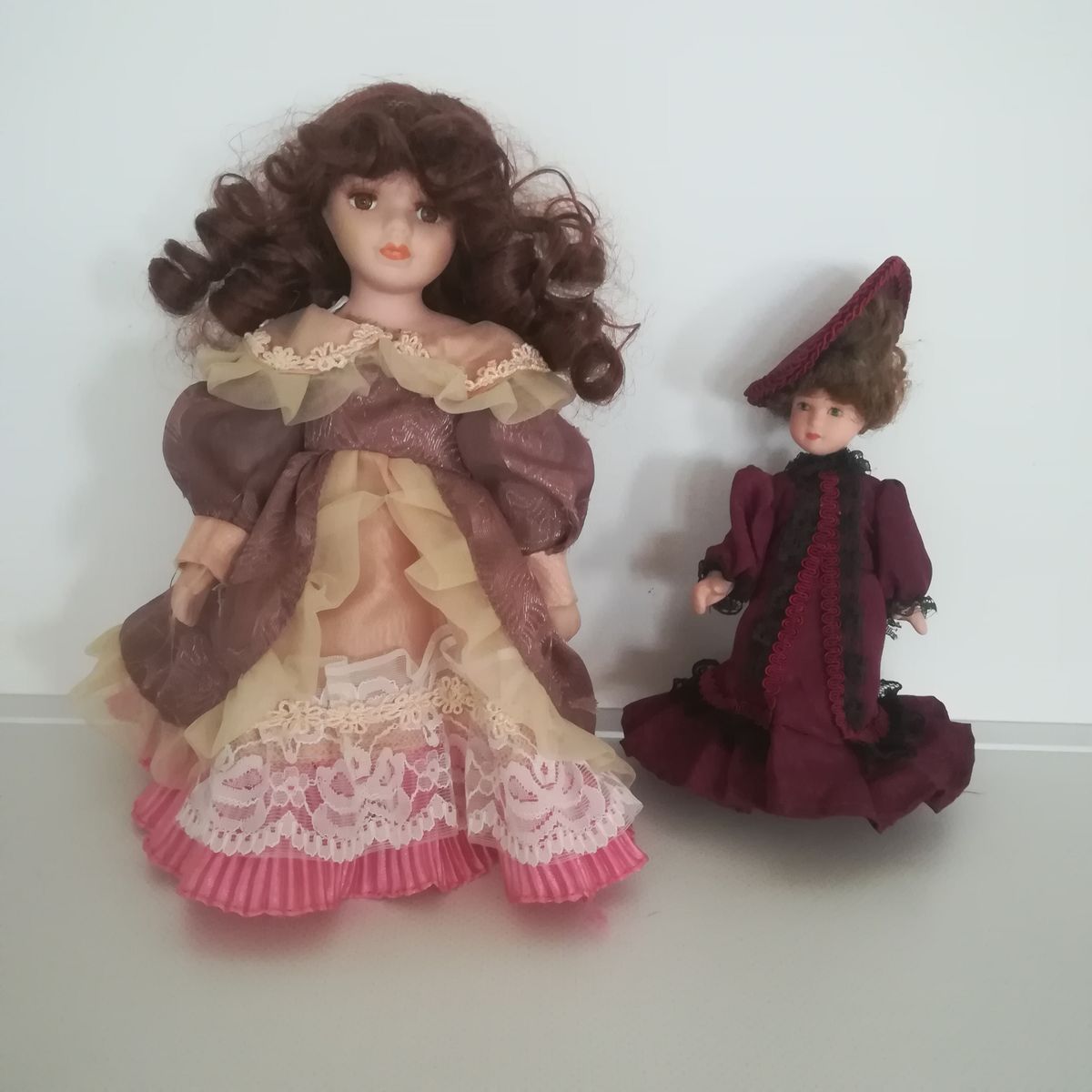 - A barna hajú, szép ruhás nagyobbik baba 22 cm magas, törzse tömött textil, végtagjai vége és feje porcelánból készült. Eredeti gyönyörű ruhájában és cipőjében. Haja nagyon szép állapotú, csigákba tekert. Hosszú szálas szempillái vannak. Állvány nélkül adom.