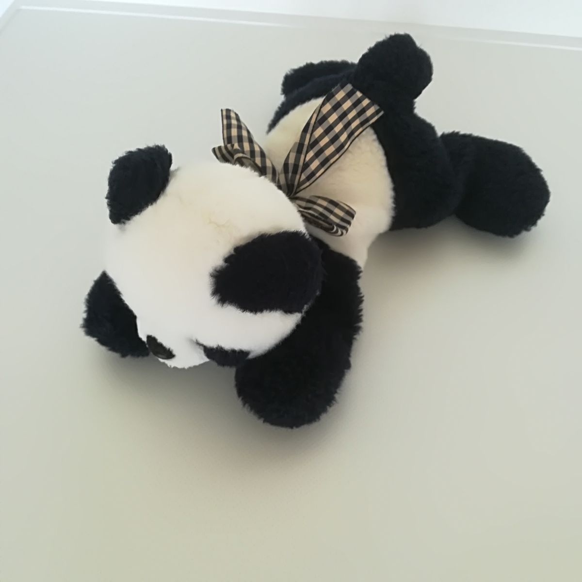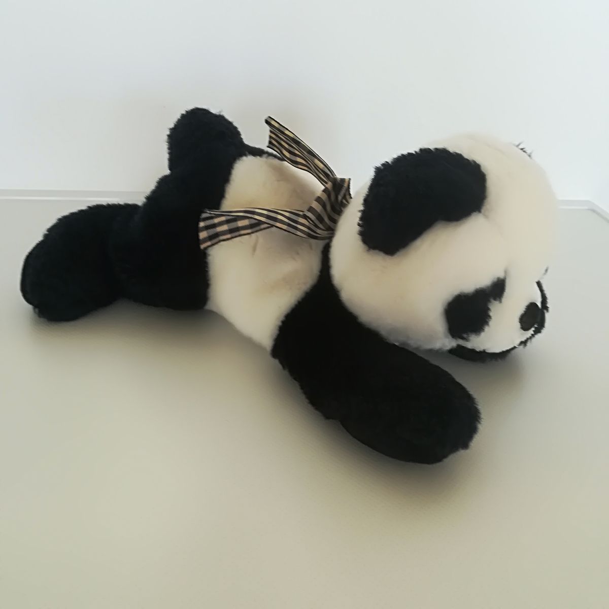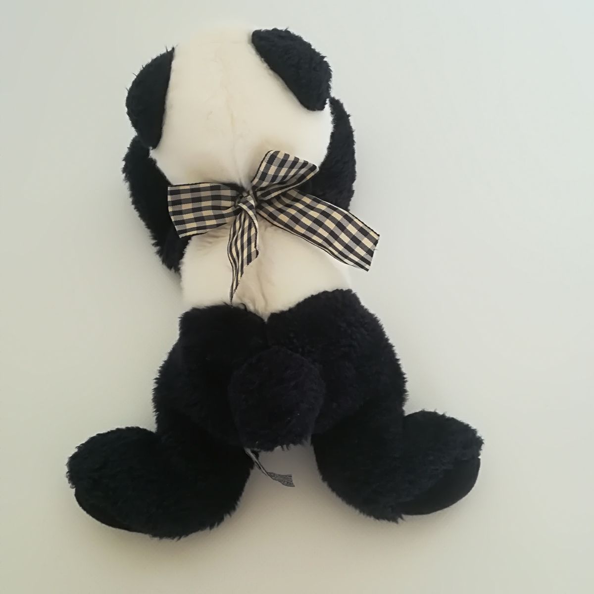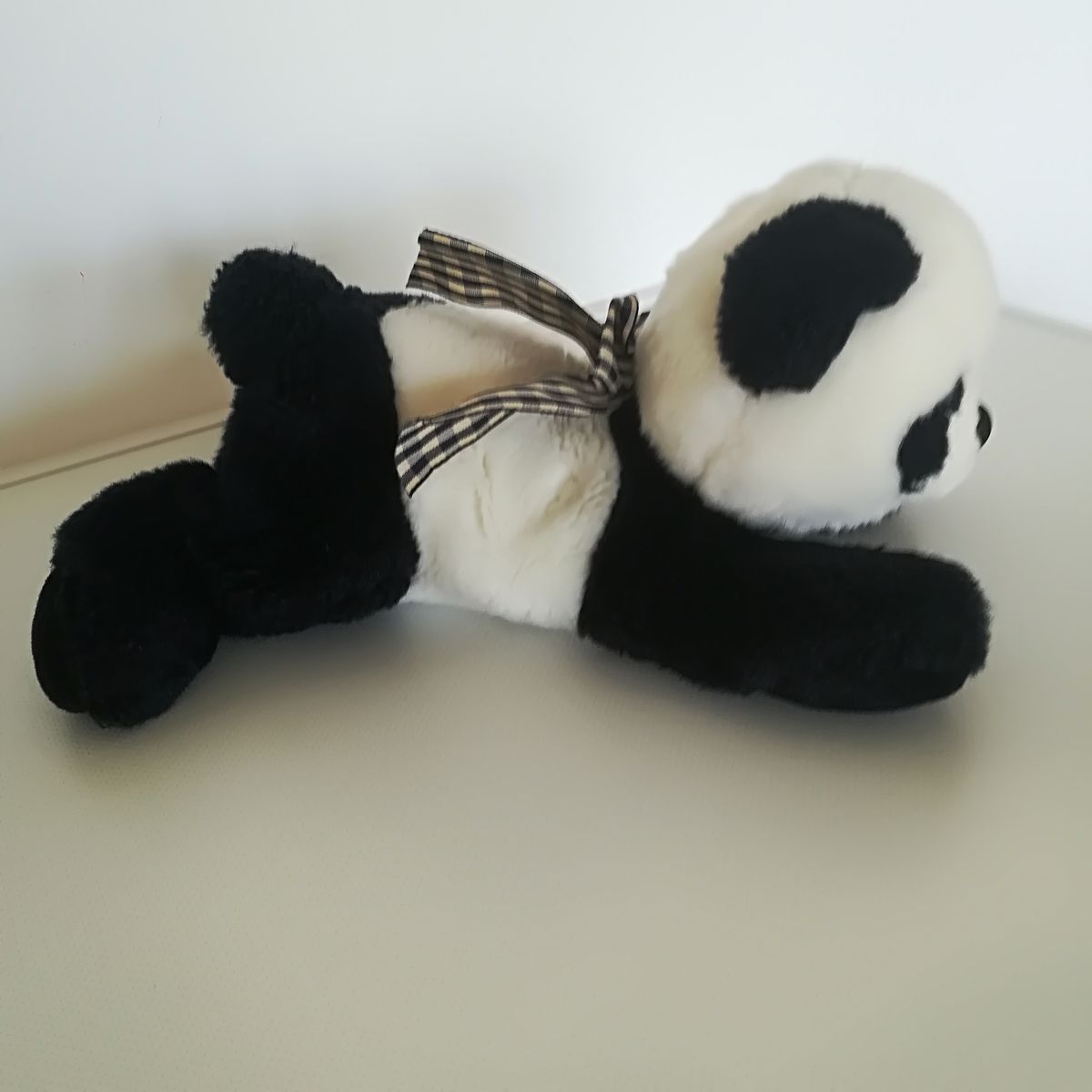 Gyönyörű állapotú hasaló plüss panda maci fekete-fehér kockás szalaggal főbb jellemzői: