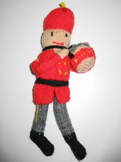 Szép állapotú egyenruhás dobos figura főbb jellemzői: Amigurumi technikával készült, kézműves termék Élénk színekkel Piros egyenruhában Nyakába akasztott dobbal, kezeiben dobverővel Magassága: 25 cm