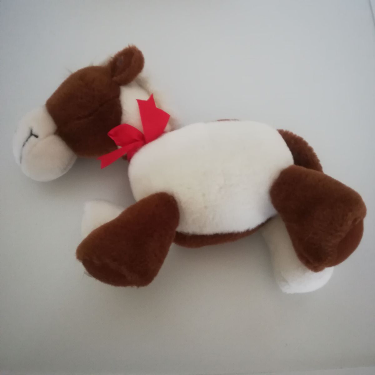- Barna fehér színű, pihepuha bundája van