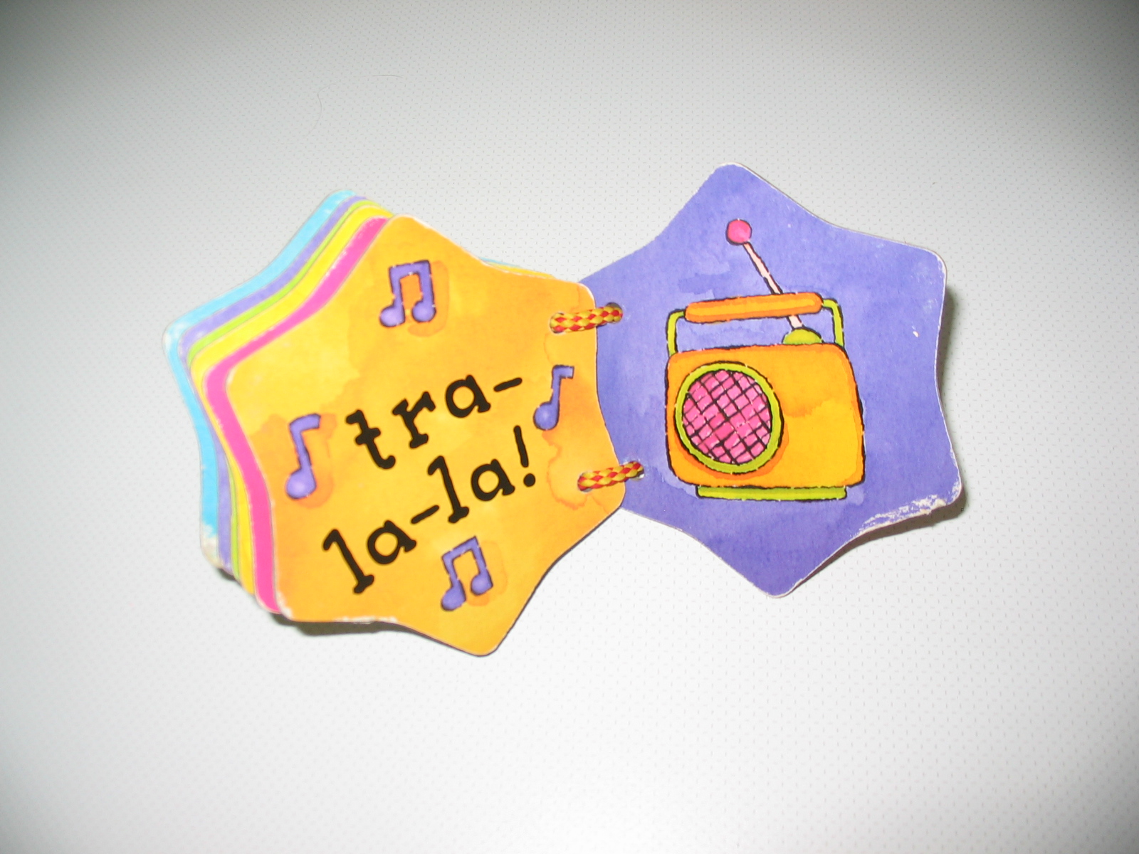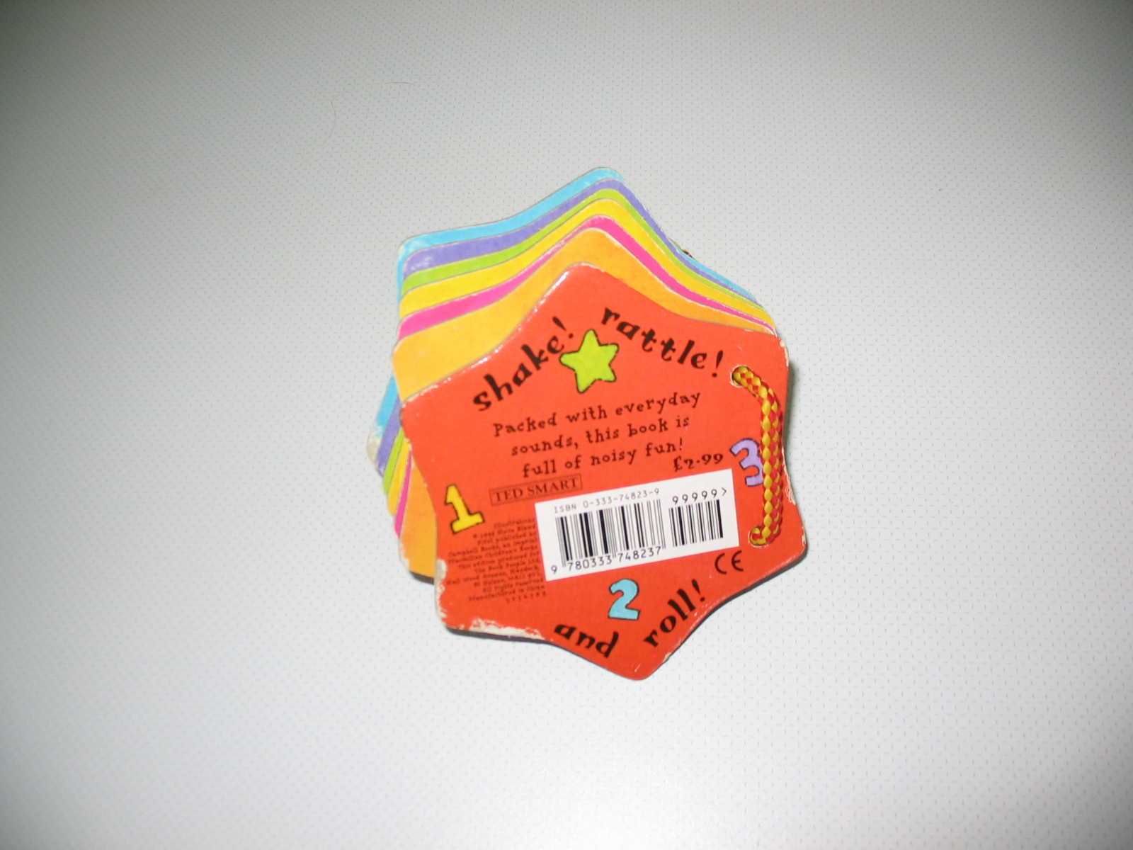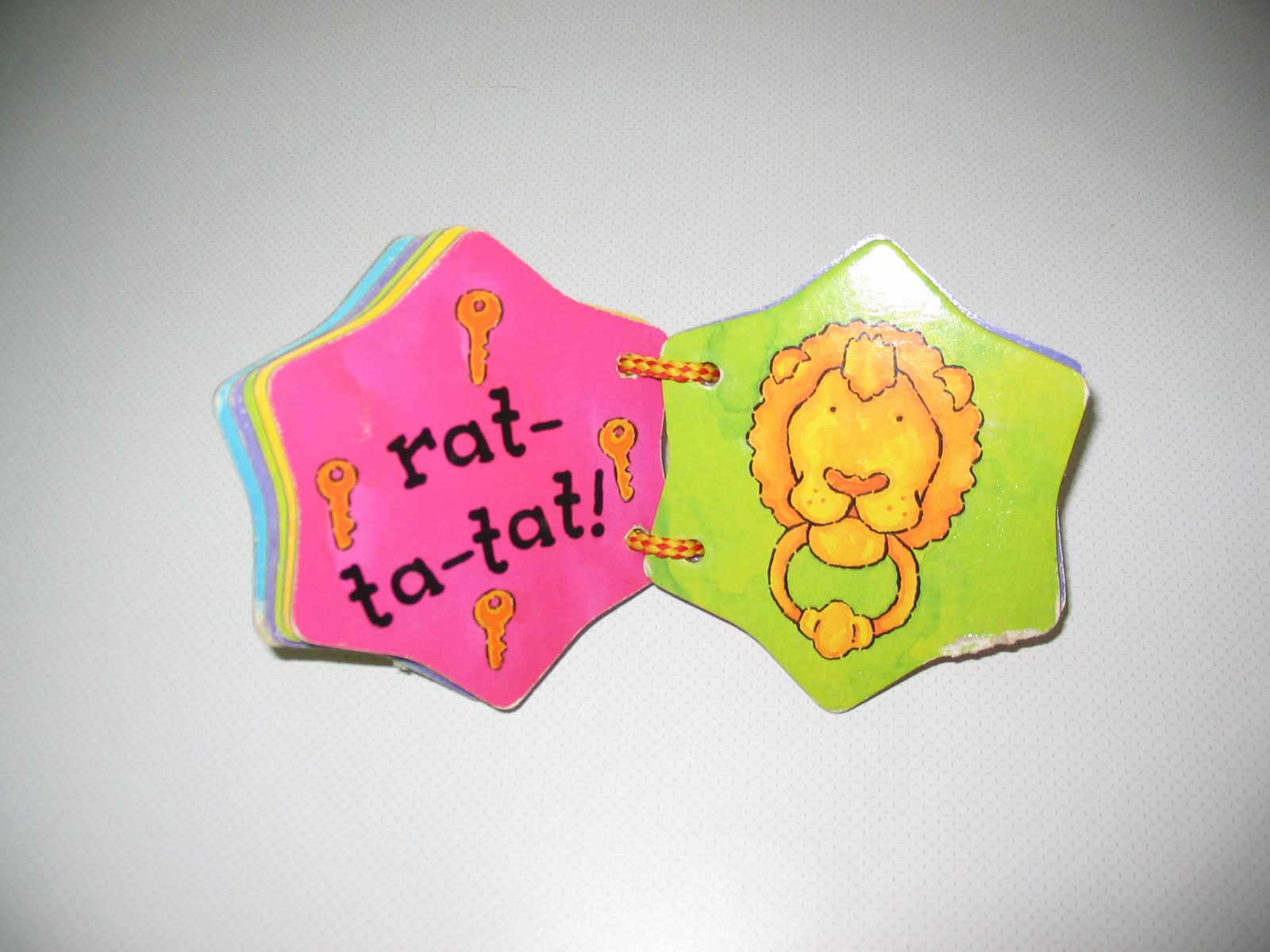 Használt állapotú lapozható keménylapos csörgős babakönyv figura főbb jellemzői: